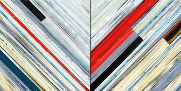 (Above: Weaving 1423 (Chevron), Nina Tichava, 2014, acrylic, ink, paper on panel, 24 x 48 in) Click to enlarge.